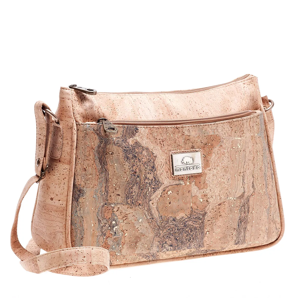 Mala de Tiracolo em cortiça Montado com um compartimento principal com fecho para segurança dos seus pertences essenciais, bolso frontal com fecho para acesso rápido, alça ajustável, proporcionando conforto personalizado e versatilidade na sua utilização. Interior com bolsos adicionais para manter os seus objetos organizados de forma eficiente.