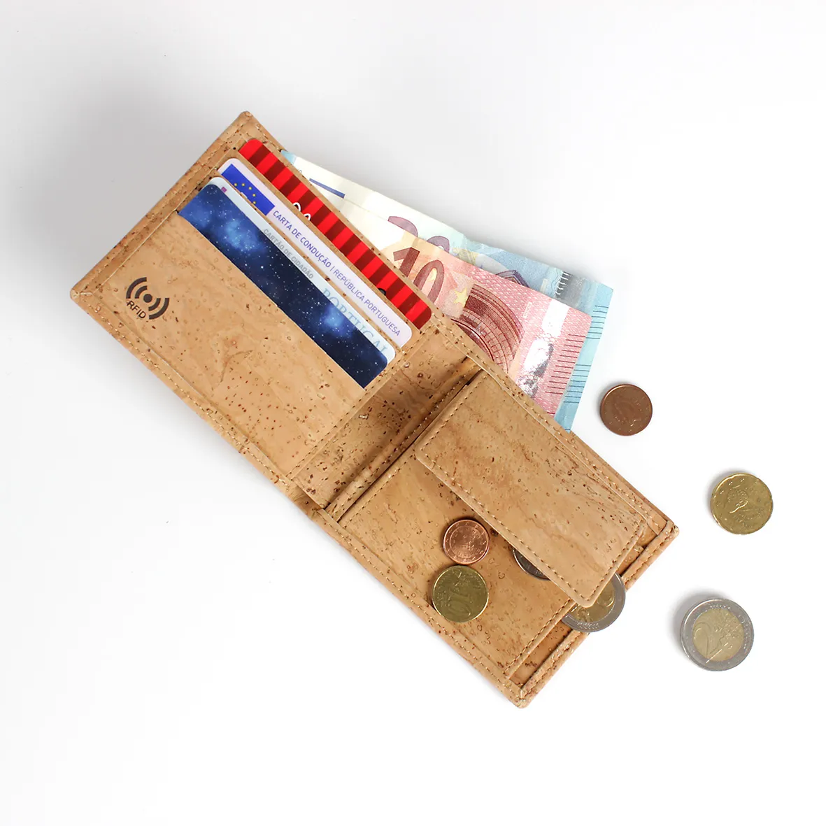 Porta-Moedas Clássico em Cortiça Eco-Friendly com Proteção Antirroubo RFID